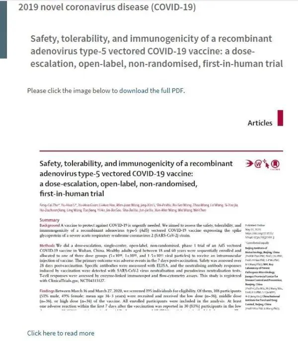 柳葉刀發(fā)布陳薇團(tuán)隊疫苗試驗結(jié)果: