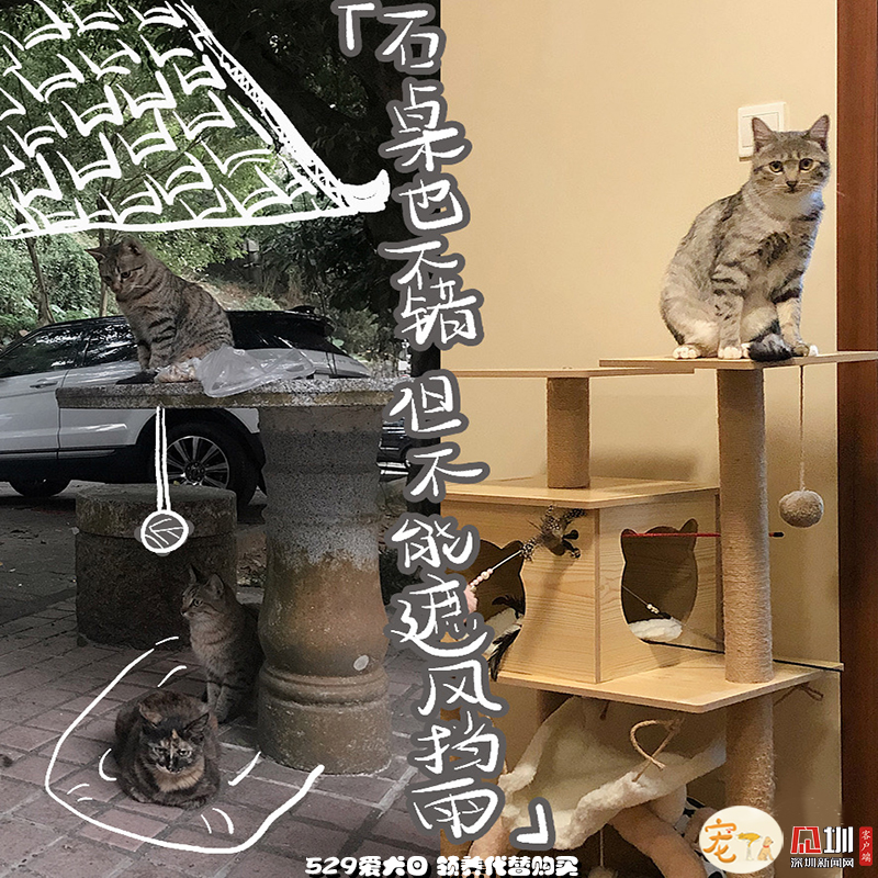 外面的世界再精彩,也比不過(guò)一個(gè)能遮風(fēng)擋雨,沒(méi)有車(chē)流、毒藥威脅,三餐穩(wěn)定、四季如春的容身之處,更何況,這里還有比石桌更有趣的貓爬架和比落葉更好玩的小玩具?,F(xiàn)在“高高在上”“作威作福”的貓咪,也是花光了一生所有運(yùn)氣,才能在無(wú)法獨(dú)自生存的小時(shí)候,遇見(jiàn)一個(gè)愿意照顧TA一生的“兩腳獸”。