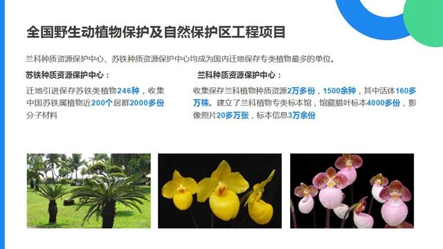 野生動植物在保存著豐富的遺傳基因多樣性,在拓展人類未來生存空間等方面具有難以估量的價值。為此,2001年12月21日,全國野生動植物保護(hù)及自然保護(hù)區(qū)建設(shè)工程在京啟動,并重點(diǎn)實施大熊貓、朱鹮、虎、金絲猴、藏羚羊、揚(yáng)子鱷、亞洲象、蘭科植物、蘇鐵植物等15大極度瀕危的珍稀物種的拯救和繁育,其中全國僅有兩個植物類物種資源保護(hù)中心蘭科、蘇鐵種質(zhì)資源保護(hù)中心落戶羅湖。蘇鐵種質(zhì)資源保護(hù)中心遷地引進(jìn)保存蘇鐵類植物246種,收集中國蘇鐵屬植物近200個居群2000多份分子材料。蘭科種質(zhì)資源保護(hù)中心收集保存蘭科植物種質(zhì)資源2萬多份,1500余種,其中活體160多萬株。建立了蘭科植物專類標(biāo)本館,館藏臘葉標(biāo)本4000多份,影像照片20多萬張,標(biāo)本信息3萬余份。