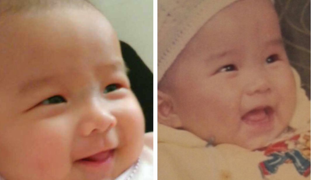我家娃娃正面像爸爸。