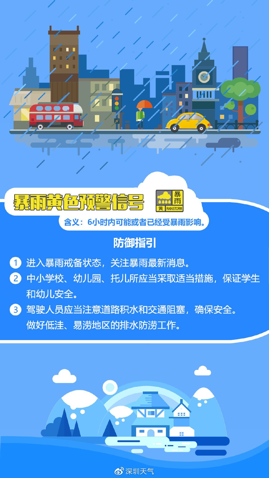 據(jù)深圳天氣微博消息,過去1小時,大鵬新區(qū)和東部海區(qū)累計雨量已達(dá)暴雨,預(yù)計強(qiáng)降雨還將持續(xù)2-3小時,全市進(jìn)入暴雨防御狀態(tài),請注意防御。中小學(xué)、幼兒園可視情況推遲上學(xué)。同時暴雨黃色分區(qū)、大風(fēng)黃色、雷電預(yù)警正在生效中,請注意做好防御。