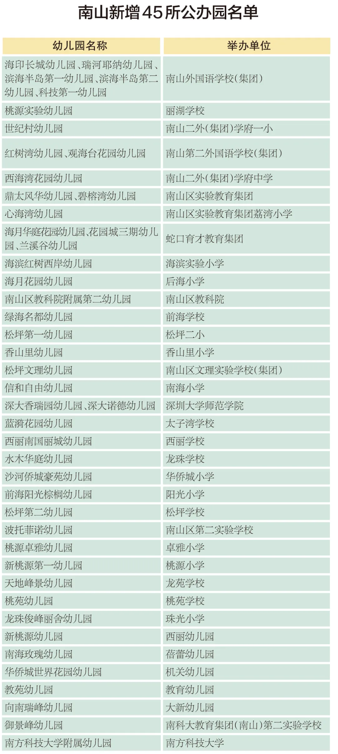 其中2所為原有公益民辦園轉(zhuǎn)型,分別是蛇口育才教育集團(tuán)陽光幼兒園和南山區(qū)科技第一幼兒園。