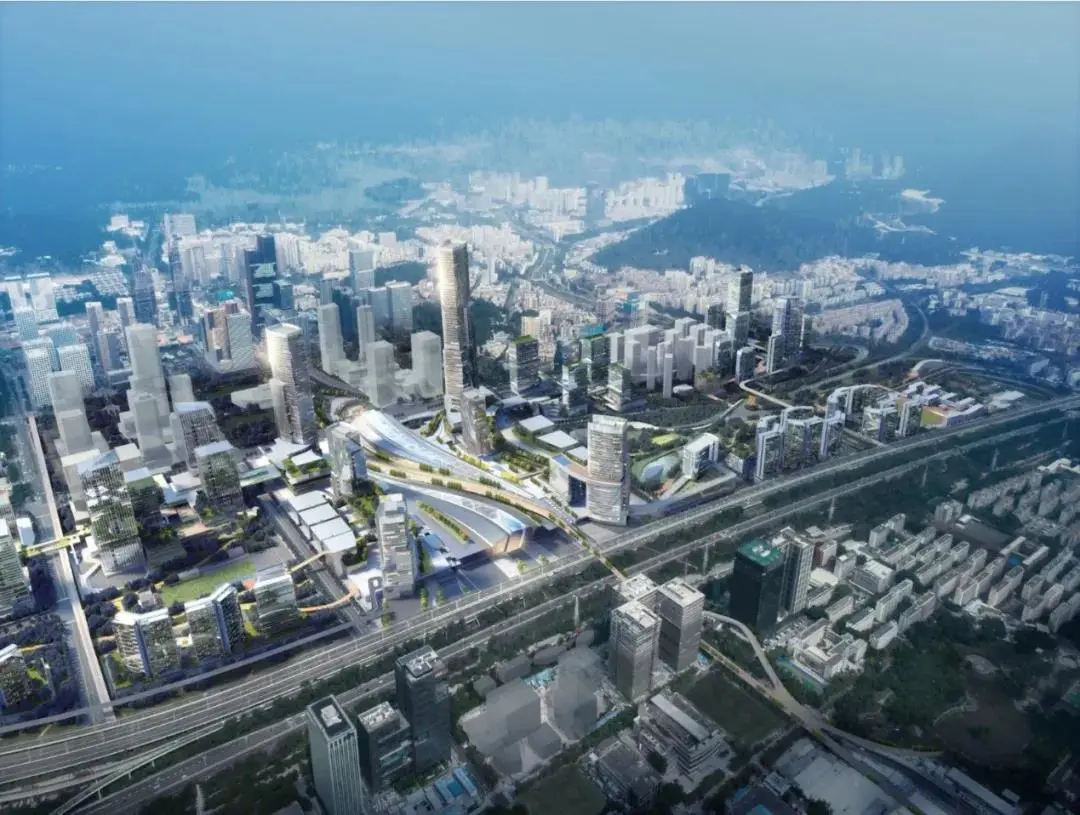 ▲西麗高鐵樞紐項(xiàng)目俯瞰效果圖。