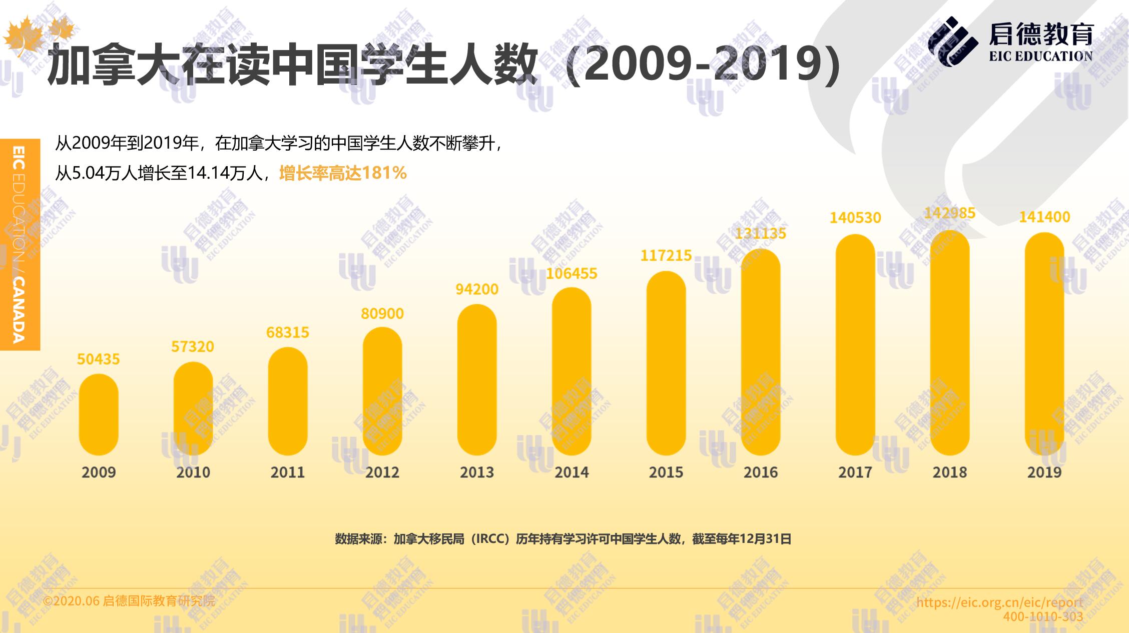一直以來(lái),加拿大都是中國(guó)學(xué)生四大熱門留學(xué)目的地之一。對(duì)于中國(guó)意向留學(xué)生來(lái)說(shuō),加拿大擁有教育質(zhì)量高、留學(xué)選擇靈活豐富、性價(jià)比高等優(yōu)勢(shì)。加拿大移民局( Immigration, Refugees and Citizenship Canada )公布的學(xué)習(xí)許可持有者數(shù)據(jù)顯示,2019年度約有14.14萬(wàn)中國(guó)學(xué)生在加拿大留學(xué),占加拿大全部國(guó)際留學(xué)生的22.1%。中國(guó)學(xué)生人數(shù)從2009年的5.04萬(wàn)人增長(zhǎng)至2019年的14.14萬(wàn)人,增長(zhǎng)率高達(dá)181%。