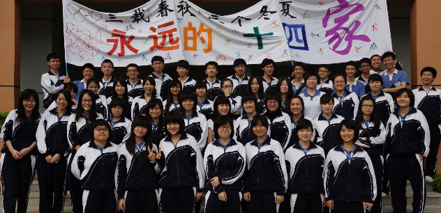 有一年校運(yùn)會,張老師所帶的2008級14班的入場解說詞中,有這樣一句:“看,高三‘十四家’的方隊意氣風(fēng)發(fā)地走過來了,他們代表這個大家庭的59名成員……”