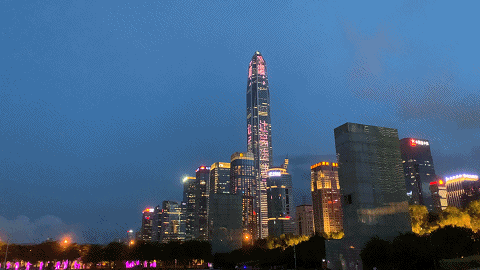平安國際金融中心、京基100大廈、深圳漢國城市商業(yè)中心、深圳灣1號(hào)、中國華潤大廈五座城市地標(biāo)的外立面上,同時(shí)亮起了絢麗的燈光。