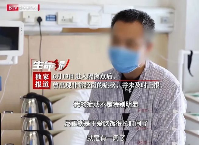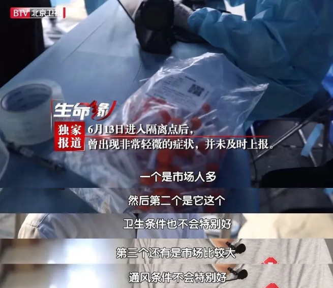 一名新發(fā)地市場保潔員,13日轉運到集中隔離點進行集中醫(yī)學觀察,20日出現(xiàn)咳嗽等癥狀,未報告、未服藥,9天后確診。