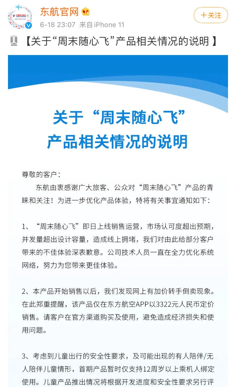 在官方微博,東航就“隨心飛”產(chǎn)品發(fā)表了一個說明,對用戶出現(xiàn)不好的體驗致歉,并稱技術(shù)人員正在全力優(yōu)化系統(tǒng)網(wǎng)絡(luò),努力給用戶帶來好的體驗。