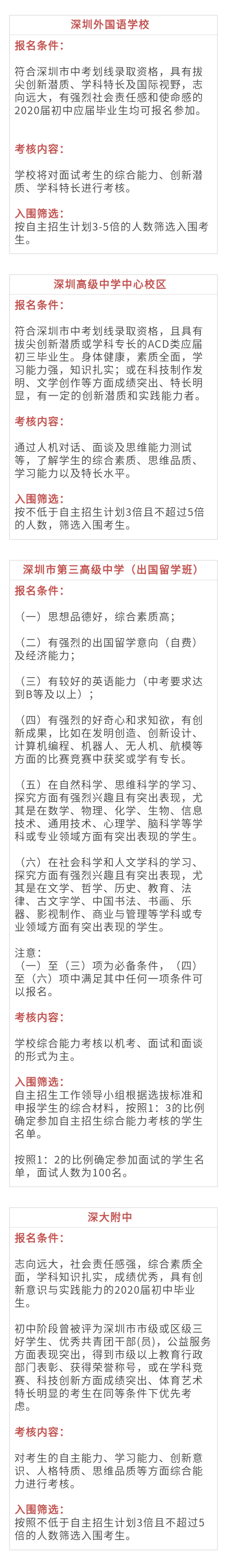 對于自招,各高中有哪些要求?小南匯總了深圳一類自主招生19所高中信息,一起來看看吧!
