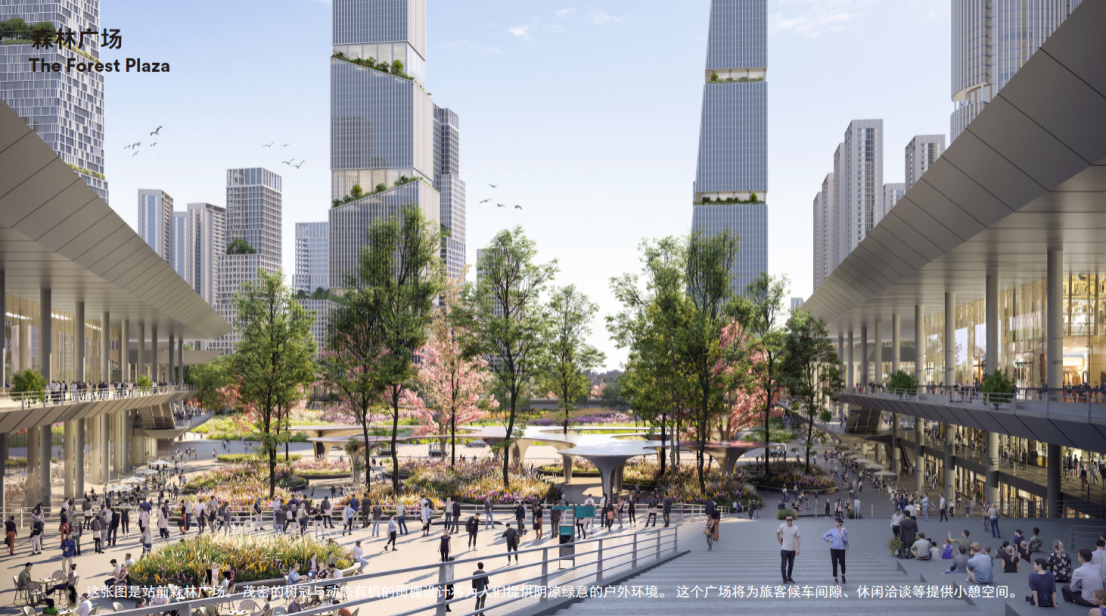 方案以獨特的“綠鏈都芯”為理念,打造一個耦合生態(tài)、交通和公共生活的超級樞紐。設計的中央綠芯引入大面積森林和草甸,使人們在城市中重遇自然,讓北站樞紐地區(qū)既擁有大城市商務中心區(qū)的特質(zhì),也擁有郊外自然的品質(zhì),形成全新的都市生活體驗。同時,中央綠芯還包括會議論壇、多功能演藝中心等一系列公共服務設施,提供面向未來的文化知識交流服務。