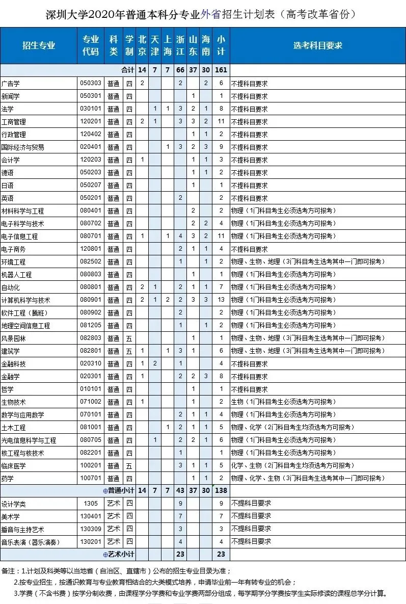 深圳大學(xué)2020年面向全國29個?。ㄗ灾螀^(qū)、直轄市)招生,招生總規(guī)模保持不變,總計(jì)劃為6750人。增加天津這1個招生省份;增加廣東省外招生計(jì)劃;增加金融科技、機(jī)器人工程、學(xué)前教育(師范)3個招生專業(yè);增加軟件工程(騰班)、心理學(xué)(師范)2個專業(yè)方向。