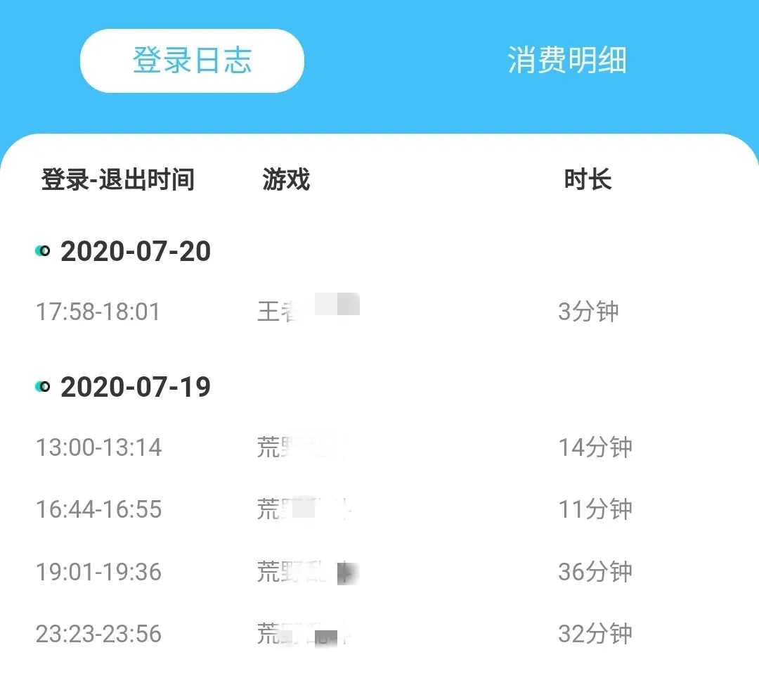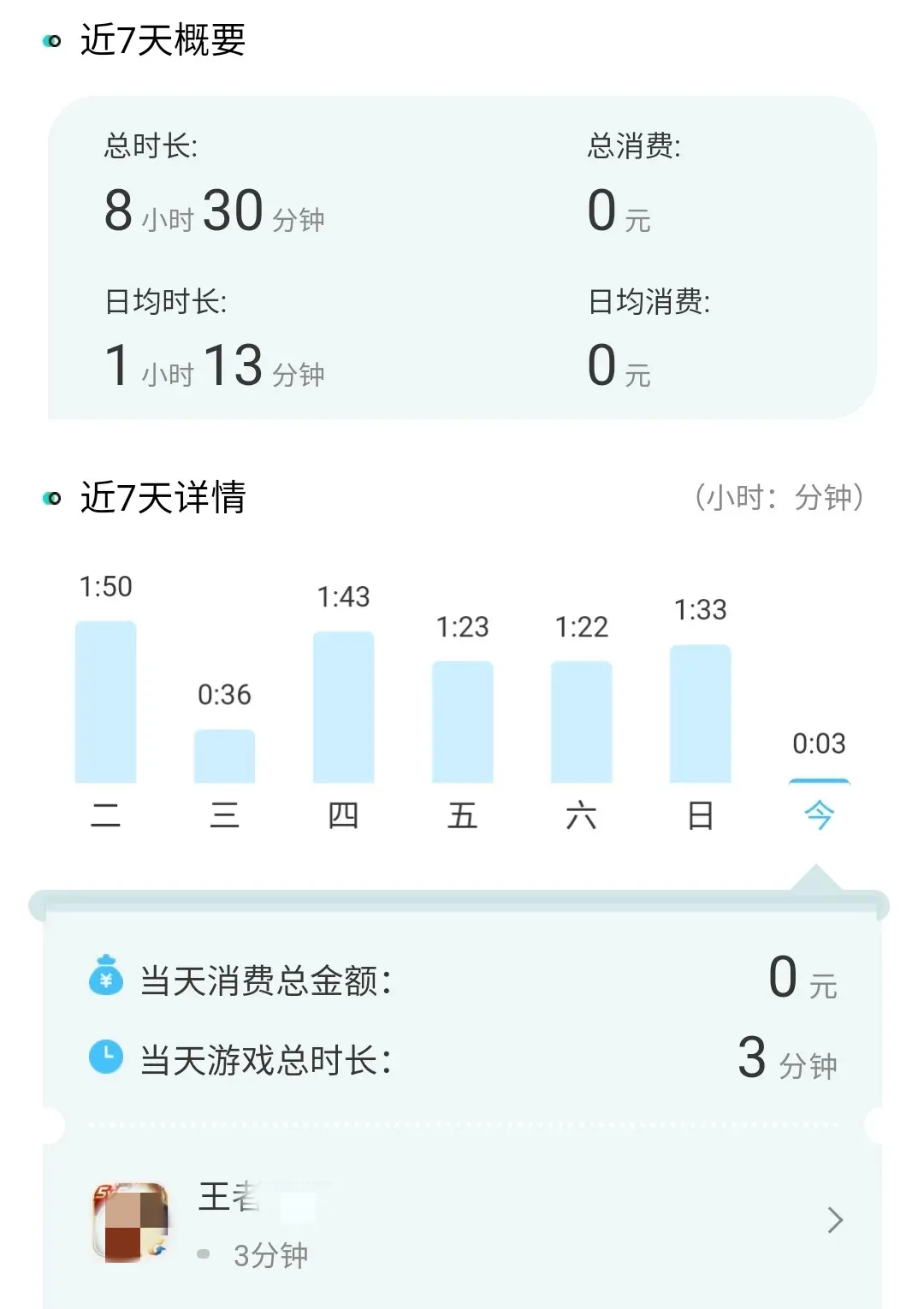 點(diǎn)擊進(jìn)入詳情頁(yè),甚至還能看到最近7天的統(tǒng)計(jì)情況,總共玩多長(zhǎng)時(shí)間,每天玩多長(zhǎng)時(shí)間,每次登陸哪款游戲,登錄了多久,什么時(shí)候退出游戲……