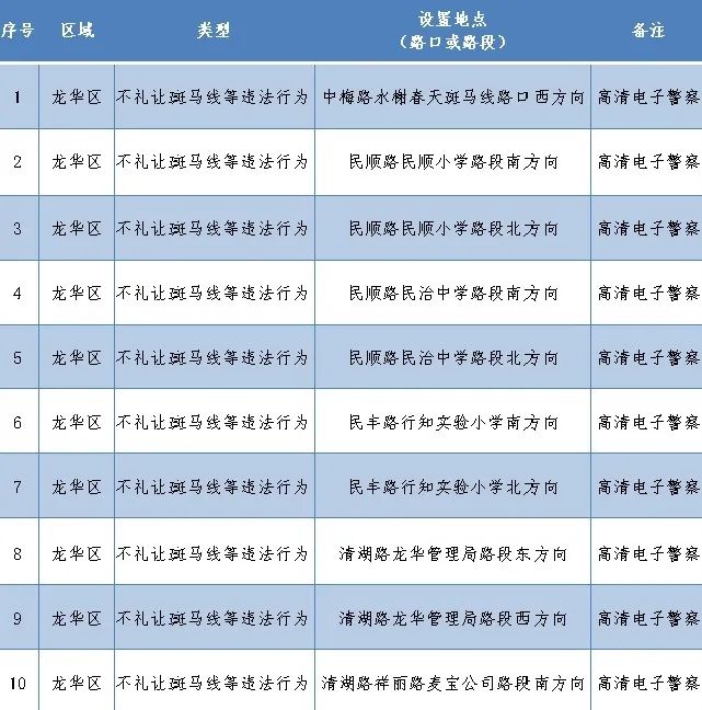 見圳客戶端·深圳新聞網(wǎng)2020年7月28日訊 為保障道路的通行有序和安全,加大對機動車違法行為的非現(xiàn)場執(zhí)法力度,保障深圳道路交通安全暢順。近期,深圳交警根據(jù)《道路交通安全違法行為處理程序規(guī)定》(公安部令105號)第十六條規(guī)定,依法公布啟用262套交通技術(shù)監(jiān)控設(shè)備。
