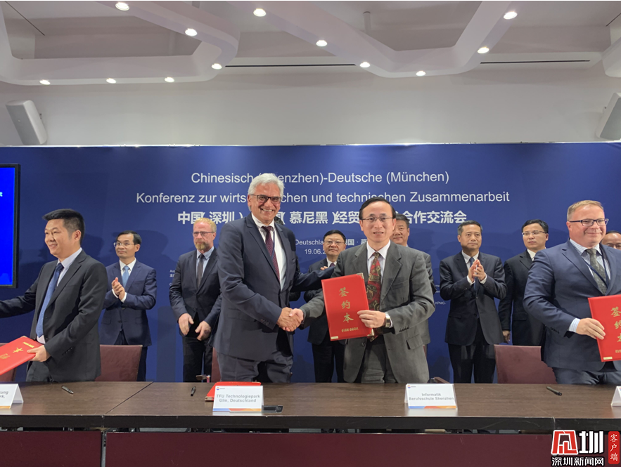 2019年6月,深信院與寶安區(qū)人民政府、德國(guó)烏爾姆TFU科技園、德國(guó)史太白經(jīng)濟(jì)促進(jìn)基金會(huì)在德國(guó)慕尼黑正式簽署四方聯(lián)合共建的“灣區(qū)中德教育與經(jīng)濟(jì)協(xié)同發(fā)展示范基地”合作框架協(xié)議。