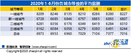 雖然求職競(jìng)爭(zhēng)激烈,但一線城市應(yīng)屆生起薪水平高于其他城市,也令不少畢業(yè)生更青睞選擇。《報(bào)告》表明,3月份之后應(yīng)屆生薪酬有所增加,二季度各月份的應(yīng)屆生起薪也在逐漸提高。分城市等級(jí)來看,一線城市應(yīng)屆生平均起薪最高,為8227元,而新一線、二線、三線城市薪酬逐漸遞減,分別為6807、6310和6244元。從趨勢(shì)變動(dòng)來看,3月之后一線和新一線城市應(yīng)屆生薪酬變動(dòng)較小,而二線、三線城市薪酬上升明顯。