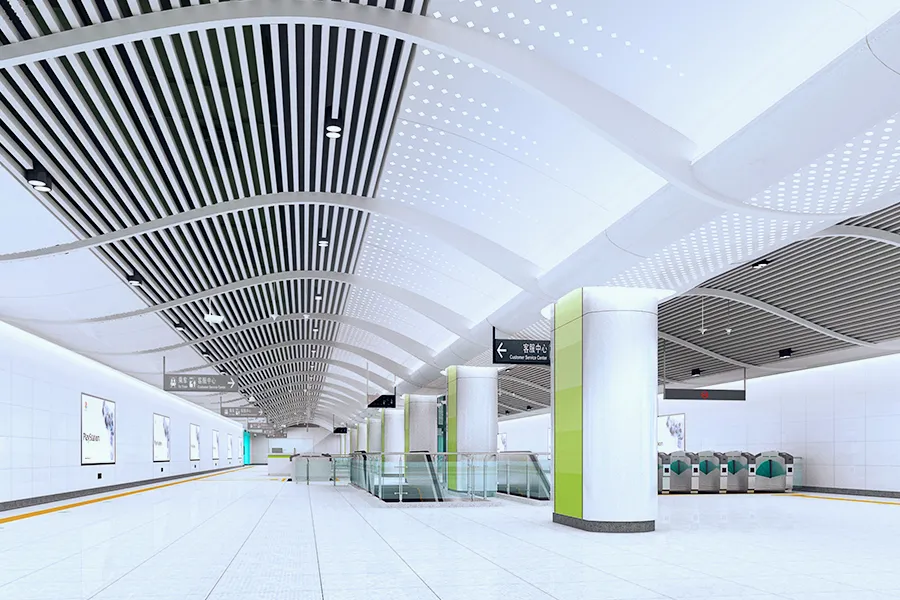 冬瓜嶺站地處福田區(qū)天威視訊附近,車站沿規(guī)劃福田彩田路南北向布置,車站為地下二層一島一側(cè)式站臺(tái)鋼筋混凝土箱形框架結(jié)構(gòu)。車站共設(shè)出入口7個(gè):A、B、C、D、3個(gè)物業(yè)出入口(E、F、G口)。