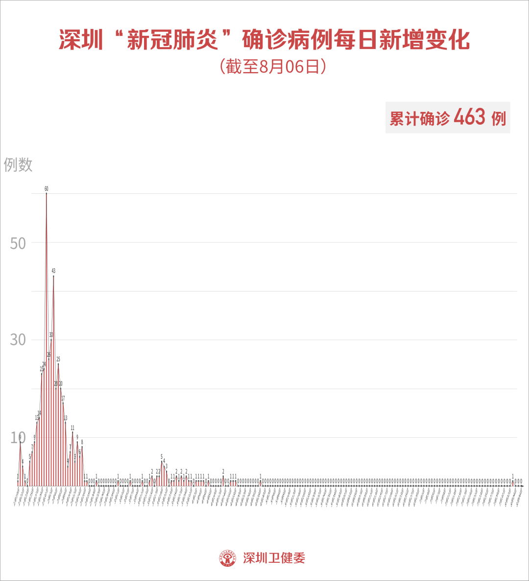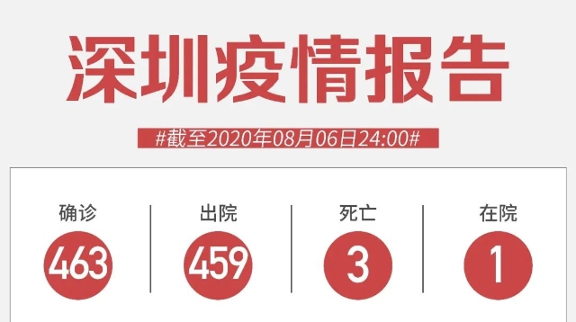 截至8月6日24時(shí),深圳市累計(jì)報(bào)告新冠肺炎確診病例463例。目前在院1例。