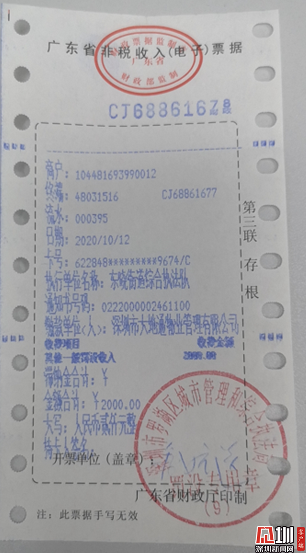 深圳新聞網(wǎng)訊 (見圳客戶端、深圳新聞網(wǎng) 記者 彭桂紅 通訊員 吳清慶)9月1日,《深圳市生活垃圾分類管理?xiàng)l例》正式實(shí)施,經(jīng)過一個(gè)月的執(zhí)法警示期,10月起,深圳垃圾分類進(jìn)入集中執(zhí)法階段,對(duì)不開展垃圾分類等行為正式開罰。記者10月14日獲悉,深圳市羅湖區(qū)東曉街道執(zhí)法隊(duì)10月12日,開出轄區(qū)首張物業(yè)罰單,對(duì)深圳市大地通物業(yè)管理有限公司因垃圾分類投放點(diǎn)和收集容器未保持整潔立案查處,作出罰款人民幣2000元的行政處罰。行政處罰相對(duì)人已依法繳納罰款。