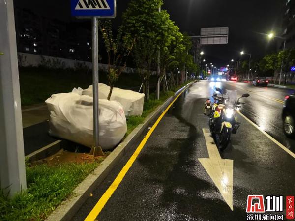 9月18日,羅湖大隊(duì)筍崗中隊(duì)警力馬清田、楊宇翰巡邏至珠嶺路時(shí),發(fā)現(xiàn)一大袋泡沫被遺落在機(jī)動(dòng)車(chē)道,馬清田、楊宇翰立即上前將泡沫移至人行道上,保障該路段車(chē)輛安全、有序通行。