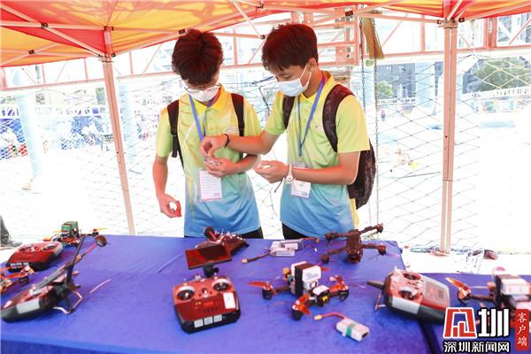 在2019年首屆活動基礎(chǔ)上,本屆賽事堅持學生全身心發(fā)展理念,以學生“所見、所感、所思、所想、所用”設(shè)5大比賽項目:無人機短片拍攝賽,25支隊伍以“我的學?!睘橹黝},使用無人機將自己所見的學校校風校貌拍攝下來,制作成短視頻作品并解說,宣傳推廣學??萍汲晒粺o人機任務挑戰(zhàn)賽,設(shè)FPV競速賽和一目視競速賽,有23支隊伍參賽,每支隊伍5名選手,合力對無人機進行改裝完成比賽,由操控選手通過第一視角顯示屏或眼鏡,直接感受無人機攜帶載重盒極速飛行的情況,完成各項任務;“逐夢大灣區(qū)”無人機程序任務賽,24支隊伍參加,每支隊伍都要認真思考、充分考慮,通過程序設(shè)計合理飛行線路,確保無人機按照指令順利飛達目的地;無人機科創(chuàng)嘉年華競賽,96支隊伍,是最多選手參加的比賽,他們充分發(fā)揮想象力,通過繪畫、制作實物等形式,將心中的無人機和粵港澳大灣區(qū)表現(xiàn)出來;無人機智能物聯(lián)賽,20支隊伍的選手正熟練地使用無人機完成物聯(lián)任務,將無人機真正融入到生活中。
