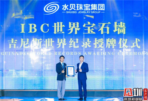 在本次“天工精制”見證盛典活動上,舉行了IBC世界寶石墻吉尼斯世界紀(jì)錄授牌儀式,水貝珠寶集團(tuán)副總裁盧森榮從吉尼斯世界紀(jì)錄官方認(rèn)證官楊紹鵬手中接過認(rèn)證證書,標(biāo)志著IBC世界寶石墻挑戰(zhàn)世界“面積最大,珠寶種類最豐富”的寶石壁畫紀(jì)錄成功。全場嘉賓一同親歷“世界之最”的誕生,高端賽事見證國際殊榮,IBC世界寶石墻閃耀而來,這件劃時代的藝術(shù)作品成為世界珠寶文化的傳播載體與精神堡壘,是一個偉大的壯舉。