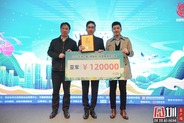 12月31日下午,由佳兆業(yè)呈現(xiàn)的第二屆“鵬城杯”全國象棋排位賽在深圳市羅湖區(qū)陽光酒店舉行頒獎儀式。王天一獲得冠軍以及30萬元的獎金,趙鑫鑫、孟辰分別獲得了亞軍、季軍。