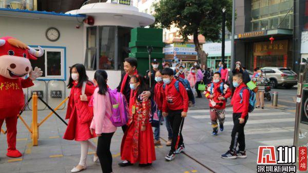 湖貝小學(xué)的老師及家長代表為學(xué)生送上寓意美好的新春祝福。