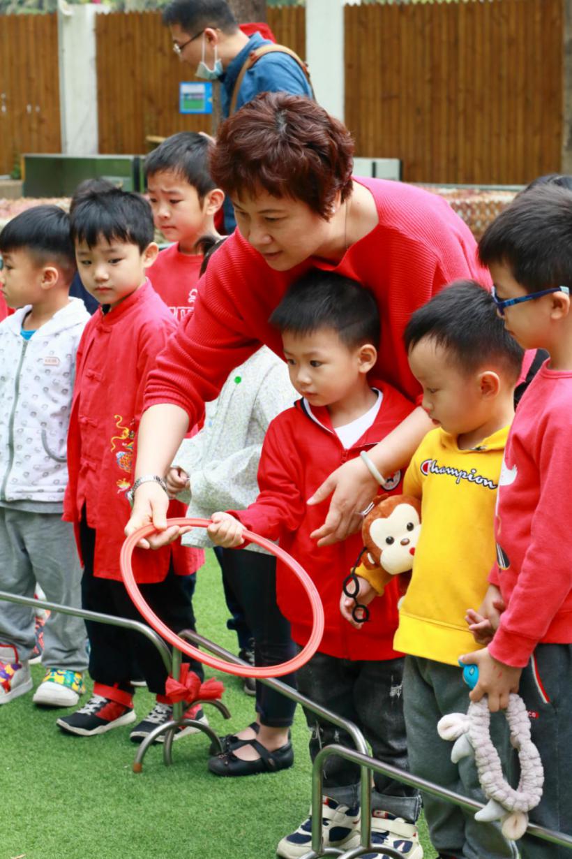 “加油!加油!”家長(zhǎng)與孩子一起參加的拔河比賽讓全場(chǎng)氣氛沸騰,套圈、貼鼻子等活動(dòng),更是讓大人們體驗(yàn)了一把兒時(shí)的歡樂(lè)。孩子們身系紅紅的綢帶、揮舞著漂亮的手絹,伴隨鑼鼓、嗩吶、镲奏出的動(dòng)感曲調(diào)扭著秧歌,更是將現(xiàn)場(chǎng)氛圍推向了高潮。