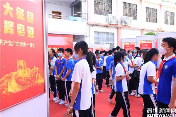 ?7月8日,“偉大征程光輝粵跡——中國(guó)共產(chǎn)黨廣東歷史一百年”羅湖區(qū)校園巡展在桂園中學(xué)舉行。