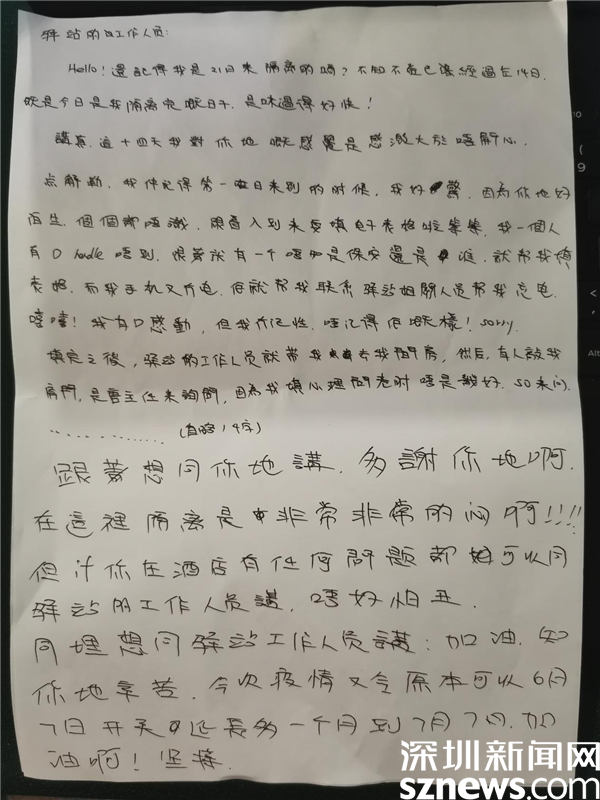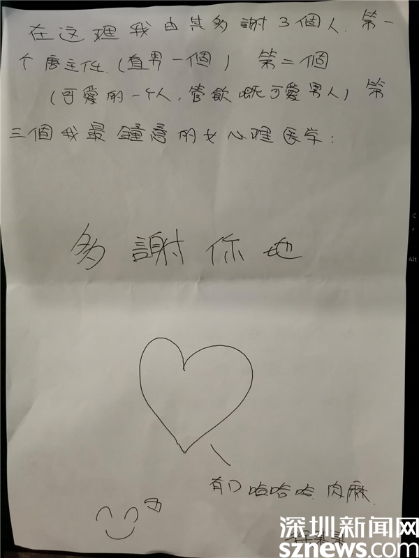 小徐親手寫(xiě)下感謝信。