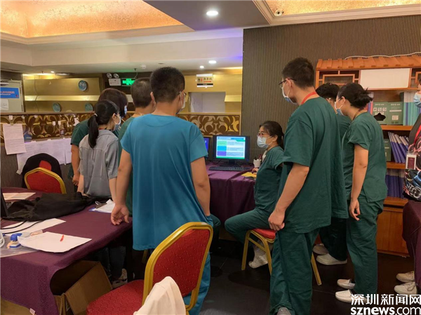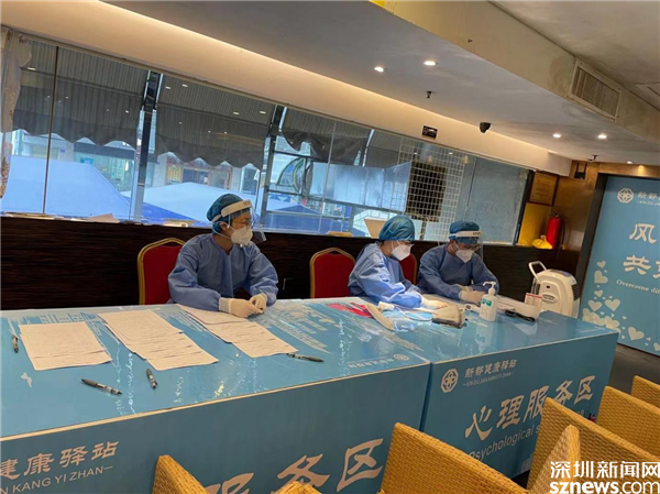 心理健康服務團隊正在心理服務區(qū)等待為隔離人員進行心理評估。