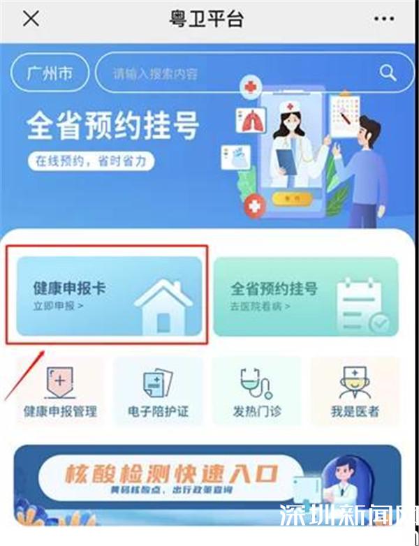 關(guān)注“粵衛(wèi)平臺”微信公眾號可以提前申報,健康申報卡有效期24小時。