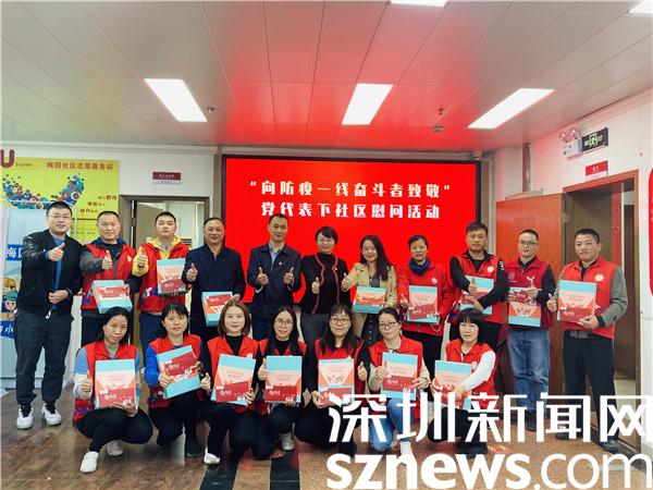 活動開始前,羅湖區(qū)黨代表、清水河街道黨工委副書記、辦事處主任宮雪,深圳市羅湖區(qū)黨代表童根生一行到梅園社區(qū)黨群服務(wù)中心慰問了梅園社區(qū)全體一線工作人員,為大家送上貼心防疫關(guān)愛包和暖心慰問信。