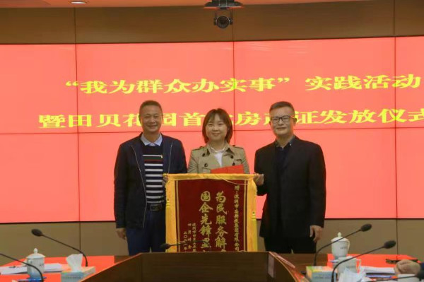 儀式當(dāng)天,5名村民代表從羅湖區(qū)領(lǐng)導(dǎo)的手中接過了房產(chǎn)證,田貝股份合作公司向有關(guān)單位贈送錦旗表示感謝。