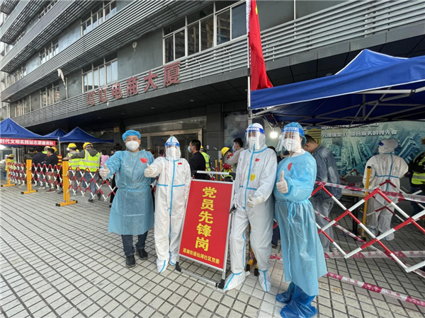 在核酸檢測(cè)點(diǎn),黨員志愿者們積極協(xié)助排隊(duì)的居民完成信息登記、打卡場(chǎng)所碼、維持秩序、入口查驗(yàn)、掃粵酸碼,從源頭上提高采樣效率。一個(gè)個(gè)流程下來(lái),一站就是3個(gè)多小時(shí),黨員志愿者們卻是越忙活越開(kāi)心,也帶動(dòng)了園區(qū)和周邊小區(qū)越來(lái)越多的黨員參與到核酸檢測(cè)點(diǎn)志愿服務(wù)中。