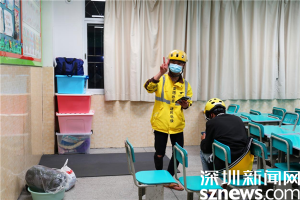 在羅湖區(qū)東曉街道的翠茵學(xué)校,記者可以看到工作人員已經(jīng)準(zhǔn)備完畢,隨時接待外賣騎手的入住?!拔覀儼才殴ぷ魅藛T24小時值守,確保外賣騎手他們有需求時能夠馬上找到工作人員,并安排每間教室住4人,今晚加急建了一臺熱水器,方便他們洗去一天的疲憊?!绷_湖東曉街道應(yīng)急管理辦公室副主任姚海龍說道。