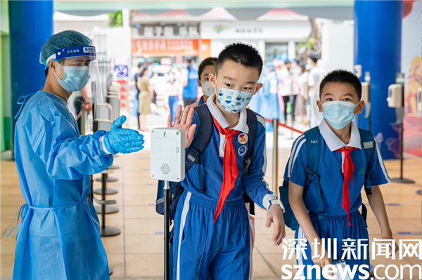 讀特客戶端·深圳新聞網(wǎng)2022年4月13日訊(記者 郭含笑 通訊員 朱莉/文 朱纓/圖)綠葉滿城,繁花綴枝。4月13日早上,蓮南小學的校門口,各類防疫設施設備整裝以待,學校領導、行政、班主任老師早早列隊等候?qū)W生返校。