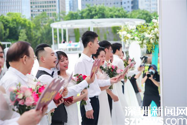 讀特客戶端·深圳新聞網(wǎng)2022年6月17日訊(記者 李慧 通訊員 楊嘉雯)6月中旬的洪湖公園,荷花盛開,17日早上,羅湖區(qū)民政局把婚姻登記頒證廳搬到這優(yōu)美環(huán)境、文明的氛圍中,舉辦“新時(shí)代心羅湖,荷創(chuàng)文明新婚俗”婚禮登記集體頒證儀式?,F(xiàn)場以并蒂蓮為背景,以文明、時(shí)尚、簡約作為主題元素,提倡“重登記、強(qiáng)責(zé)任、崇節(jié)儉”的文明新婚俗。