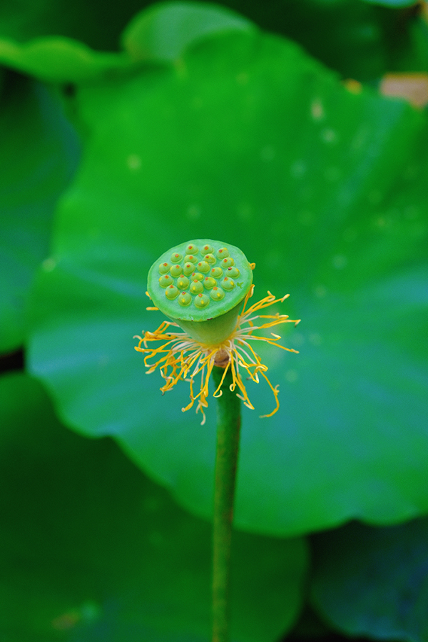 夏風(fēng)輕輕拂過“害羞”的小蓮蓬,翠綠的荷葉層層疊疊,錯(cuò)落有致。