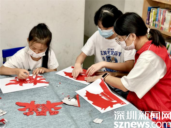 此外,在活動現(xiàn)場還安排了紅色主題手工剪紙活動,孩子們一手拿著剪刀,一手拿著紙認(rèn)真專注地剪出和平鴿、天安門、五星紅旗等各式各樣的作品,現(xiàn)場氣氛熱烈濃厚。