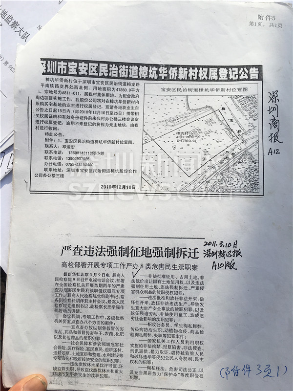 2010年深圳商報(bào)刊登的民治街道樟坑華僑新村權(quán)屬登記公告