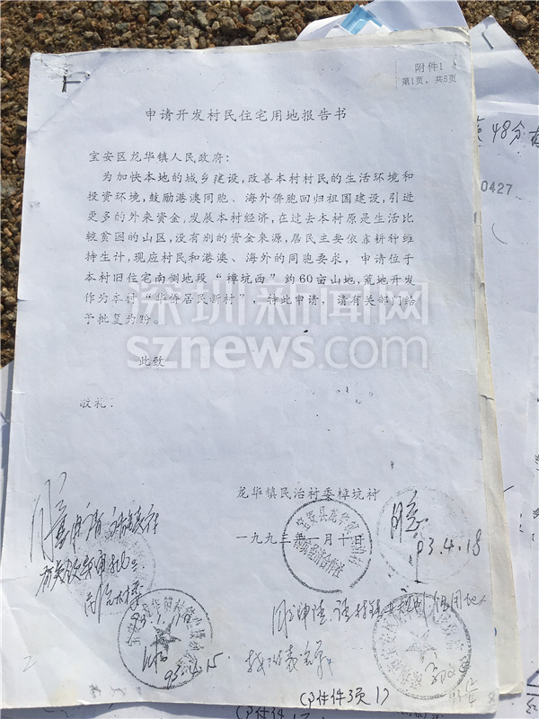 1993年龍華民治村委樟坑村申請開發(fā)村民住宅用地的報(bào)告書