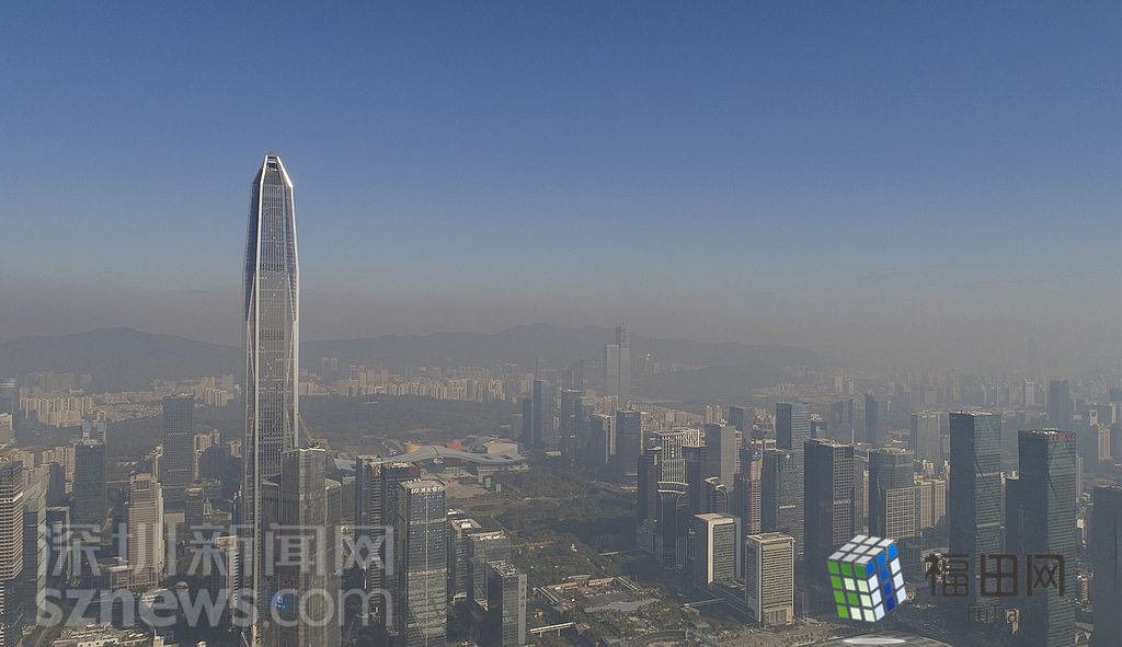 1月18日上午,記者操控無人機俯瞰深圳中心區(qū)發(fā)現(xiàn),灰霾將天空“割裂”成一道涇渭分明的界線,把城市籠罩得如同一個充滿霧靄的森林。從平安金融大廈的上空遠眺,西南面的深圳灣在灰霾的籠罩下變成了一片“沙漠”,東面的京基一百幾乎被灰霾“吞沒”,北邊平時肉眼可看的梅林山也因為能見度較低變得若隱若現(xiàn),南面的米埔濕地也被云遮霧繞。