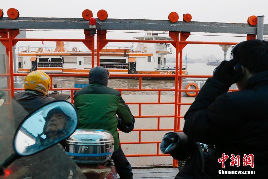 1月31日晚,上海輪渡東嫩線上運營的最后一條非空調普通輪渡結束了運營,至此,上海市輪渡公司所屬黃浦江上17條輪渡航線實現(xiàn)了空調輪渡全覆蓋,上海民眾最為熟悉的“橙色系”輪渡全部退出歷史舞臺。圖為民眾乘坐最后一條非空調普通輪渡擺渡過江。中新社記者 殷立勤 攝