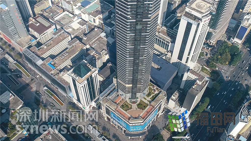 裙樓樓頂?shù)钠脚_花園和華強北步行街相得益彰。