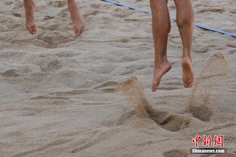 7月11日,在南京舉行的2018國際排聯(lián)沙灘排球U19世界錦標(biāo)賽進(jìn)入第二天的賽程,中外運動員輪番上場,捉對“廝殺”,一決高下。中新社記者泱波 攝
