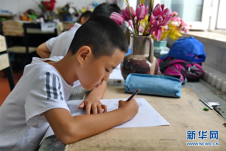 7月16日,在長(zhǎng)春市少年宮,學(xué)生在進(jìn)行繪畫練習(xí)。