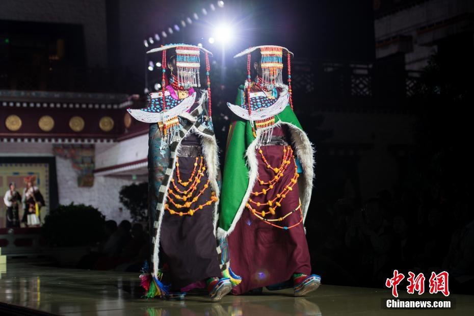 8月12日晚,由西藏職業(yè)技術(shù)學(xué)院與北京服裝學(xué)院共同打造的“凈美雪頓·美好生活”西藏民族服裝與服飾展演活動在拉薩舉行?,F(xiàn)場通過傳統(tǒng)篇、現(xiàn)代篇與未來篇三個篇章,展演了藏族傳統(tǒng)服裝26套,設(shè)計創(chuàng)新服裝58套,共計84套服裝。圖為模特展示藏族傳統(tǒng)服飾。中新社記者何蓬磊 攝