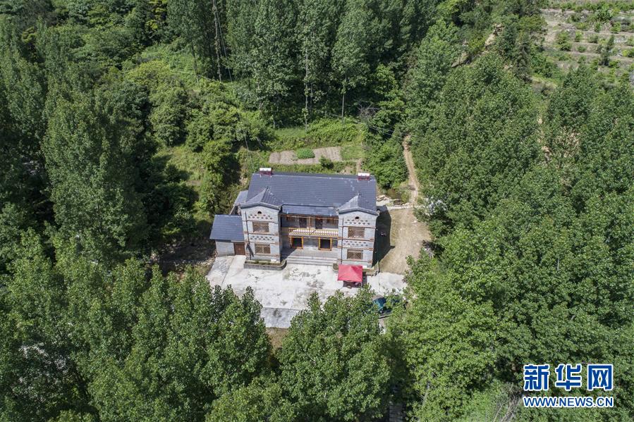 堰河村一棟建在深山中的仿古別墅(5月12日無人機拍攝)。