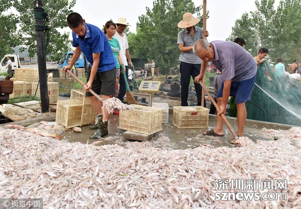 ?2018年8月12日,江蘇淮安洪澤湖全面開(kāi)捕第四天,漁民進(jìn)入銀魚(yú)和毛刀魚(yú)捕撈高峰期。